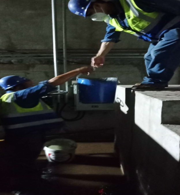 在搶修隊伍的努力下,終于結束了這場“槍淋彈雨”的“戰(zhàn)斗”。但是水洗泵房仍然有很多積水,大家又擼起袖子清理泵房積水。由于水洗泵房沒有排水道且處于低地,只能人工用桶運輸。