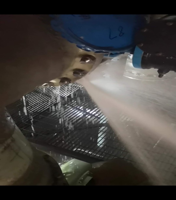 6月9日15點,山西藍鼎360脫硫脫硝水洗泵突發(fā)故障,在備用泵無法正常工作情況下,生產、檢修和電儀齊心協力在水中作業(yè),緊急處理清水池2#、3#水洗泵閥門漏水,清理1#水洗泵濾網雜物,經過近3小時的努力,設備恢復正常運行。