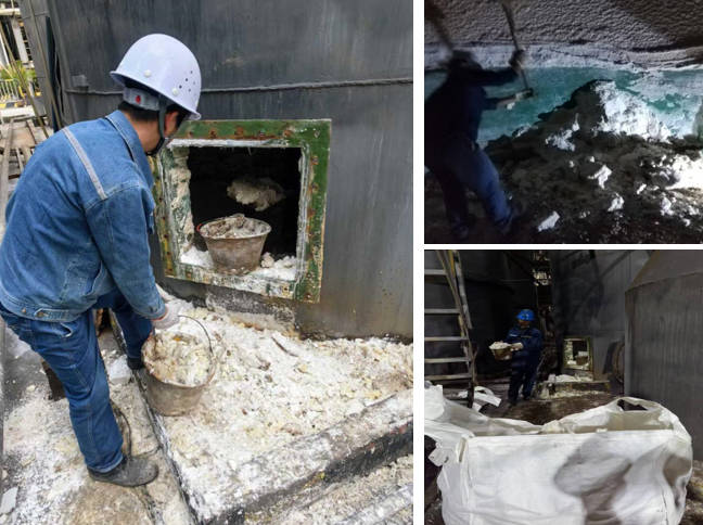 <pclass="MsoNormal"style="margin-top:6.0pt;mso-para-margin-top:.5gd;text-indent: 28.0pt;mso-char-indent-count:2.0"> <spanlang="EN-US"style="font-size:14.0pt; font-family:宋體;mso-bidi-font-family:宋體">4<spanstyle="font-size:14.0pt; font-family:宋體;mso-bidi-font-family:宋體">月2日,威遠(yuǎn)澤天班組自主對事故箱進(jìn)行了充分的通風(fēng)、制定了積鹽清理作業(yè)方案。因事故箱內(nèi)部空間狹小、作業(yè)環(huán)境復(fù)雜,氨氮味……